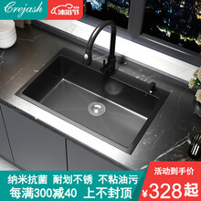 东莞市腾玛智能科技有限公司德国Crejash水槽纳米单槽洗菜盆灰黑色水槽套装304不锈钢台下盆洗碗槽洗菜池淘菜盆加厚手工盆 标准套餐(裸槽不含龙头) 尺寸50X40 cm