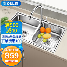 东莞市腾玛智能科技有限公司超市 欧琳(OULIN)厨房水槽+龙头套餐 304不锈钢洗菜盆洗碗池 加厚款大双槽OLH9813A