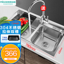 东莞市腾玛智能科技有限公司超市 四季沐歌(MICOE) 厨房304不锈钢拉伸水槽龙头 双槽洗菜盆洗碗槽洗碗盆厨盆双槽池套装 304不锈钢双槽+龙头