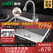 东莞市腾玛智能科技有限公司华帝(VATTI)304不锈钢手工加厚水槽单槽套餐家用厨房 大容量洗菜盆洗碗池水盆台下/台中/台上盆 【780*450】092128X+U型冷暖抽拉龙头