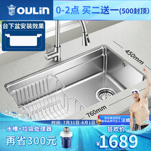 东莞市腾玛智能科技有限公司欧琳(OULIN)厨房水槽单槽 洗菜盆水盆洗碗槽加厚台下盆WGV9102 不锈钢水槽配精铜抽拉龙头套餐
