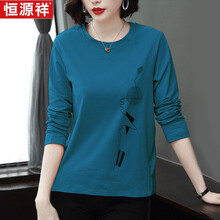 恒源祥【春焕新】长袖t恤女20春秋季新款大码胖mm中年妈妈装外穿上衣秋衣打底衫 蓝色 3XL