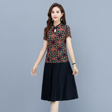 歆娜2021夏季新款网红假两件妈妈装连衣裙中老年女装改良旗袍领上衣熟女遮肚潮妈女学生单品 绿碎花_美式不过时穿搭婚礼日式胖妹妹好看日常年轻 XL 建议80-100斤_大学生内搭本季减龄夏天