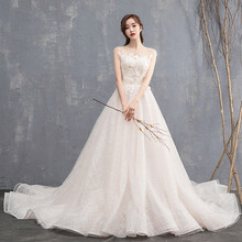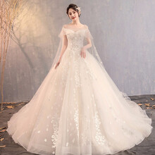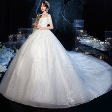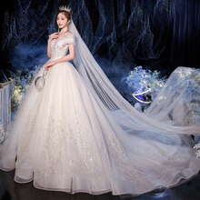 东莞市腾玛智能科技有限公司一字肩星空主纱婚纱2021新款气质新娘轻高端拖尾仙感遮手臂 拖尾款 M