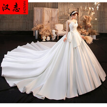 东莞市腾玛智能科技有限公司汉志HANZHI 绸面婚纱法式缎面抹胸轻婚纱2021新款新娘气质风主纱简约大气显瘦拖尾 拖尾 S