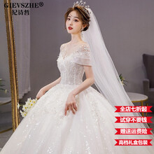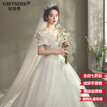 东莞市腾玛智能科技有限公司纪诗哲(GIEVSZHE)品牌女装一字肩轻婚纱2021新款气质主纱新娘夏季遮粗手臂大拖尾公主风 齐地款 L