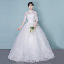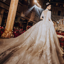 东莞市腾玛智能科技有限公司‼️婚纱2020新款立领 主婚纱礼服新娘赫本复古宫廷长拖尾网红抖音同款 白色拖尾 M
