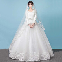 东莞市腾玛智能科技有限公司月缦 冬季婚纱女 优雅简约纯洁 新娘结婚 保暖加厚长袖齐地 白色 XL