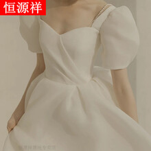 东莞市腾玛智能科技有限公司恒源祥法式轻婚纱2021新款新娘旅拍仙森系梦幻简约结婚小个子礼服女 白色 欧根缎裙 XS