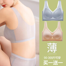 东莞市腾玛智能科技有限公司雅珠倩 运动内衣女聚拢无钢圈背心式文胸无痕美背幸福超薄大码胖MM大胸显小狐狸夏 灰色+肤色(2件装) L(建议100-120斤+80BCD)