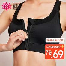 东莞市腾玛智能科技有限公司奥义瑜伽服 女款运动内衣抹胸 无钢圈前拉链高强度背心式防震聚拢调整美背文胸 时尚黑L