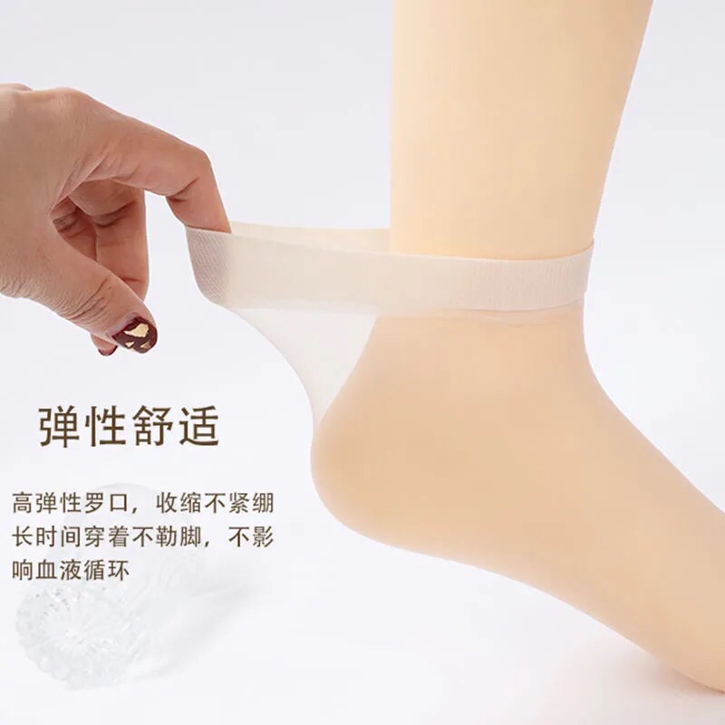 十双起卖女士黑丝袜棉底短袜ins潮夏季中筒防滑春秋薄款肉色女袜