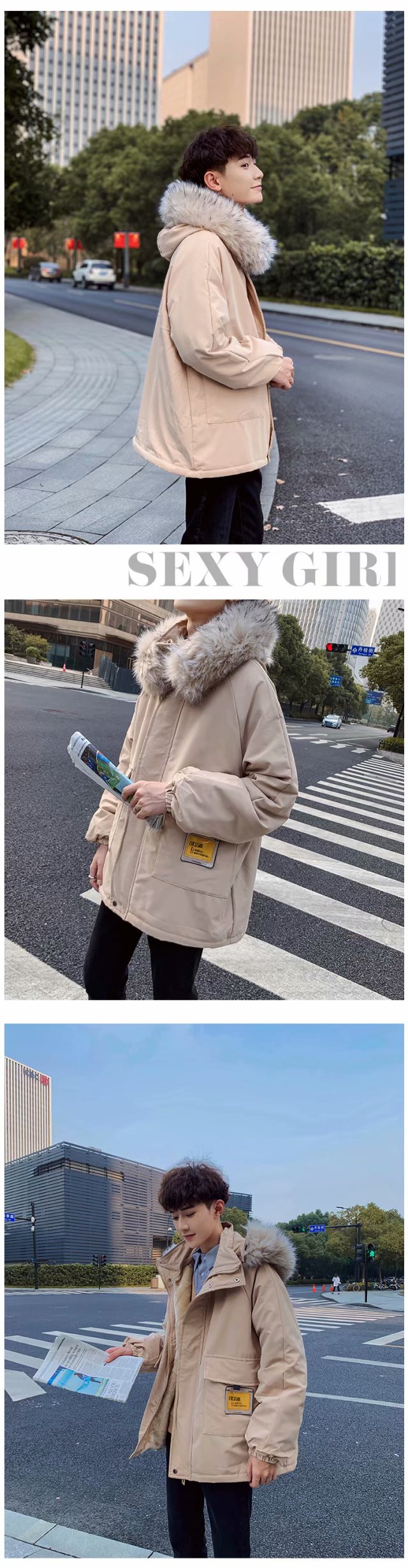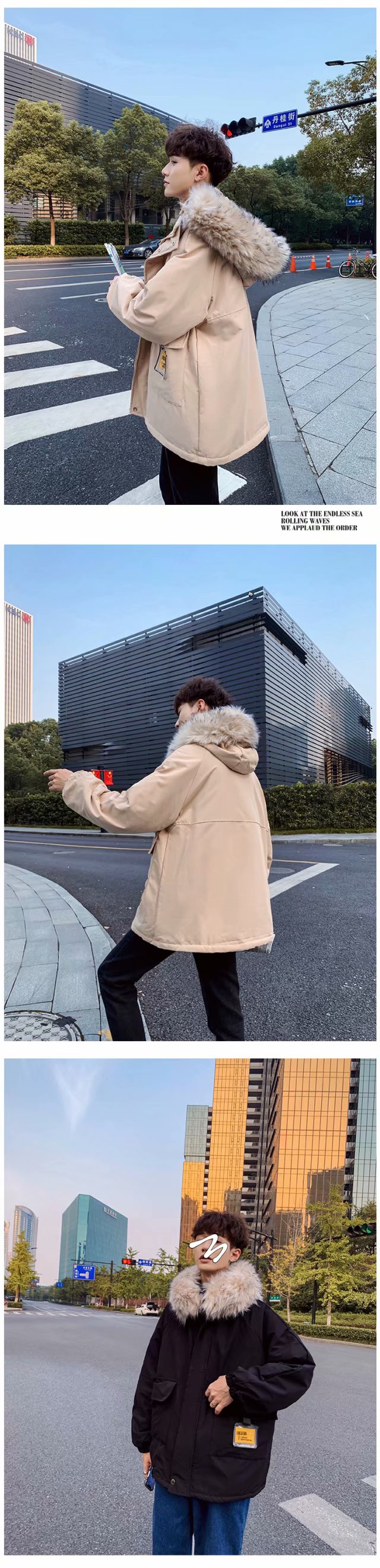 时尚棉衣男新款冬装棉服韩版潮流宽松青年加绒加厚羊羔毛棉袄外套