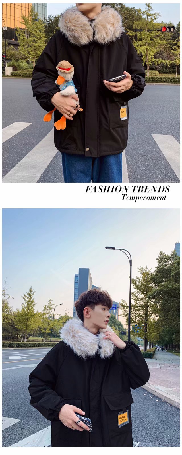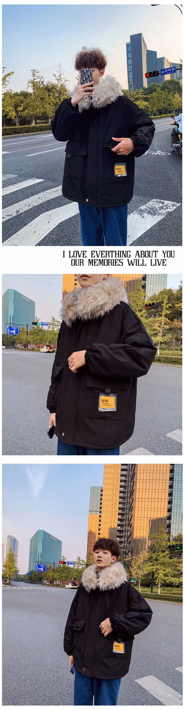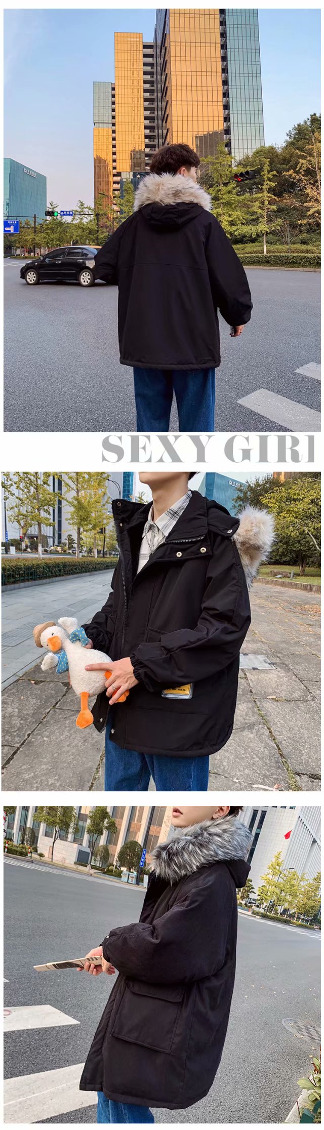 新款男士秋冬男装新款时尚休闲时尚防寒保暖宽松连帽外套