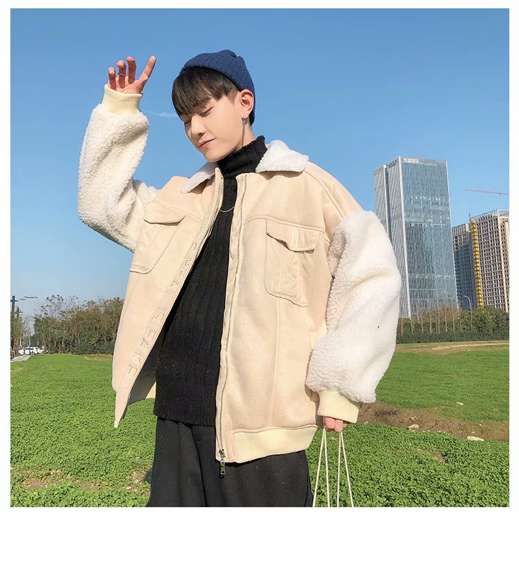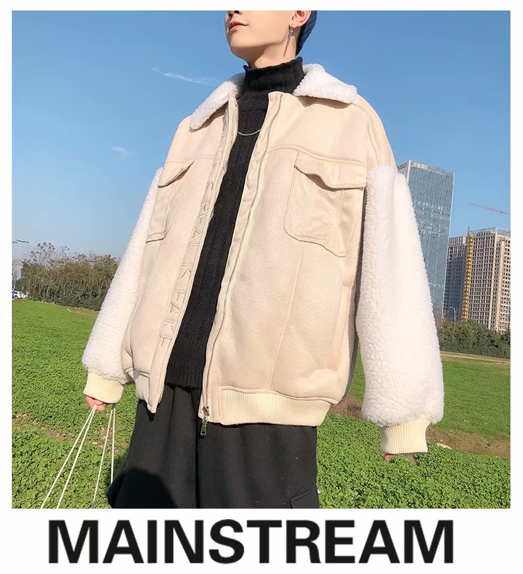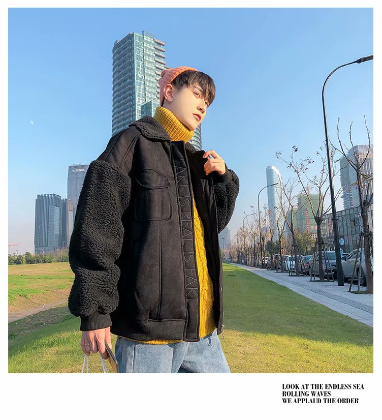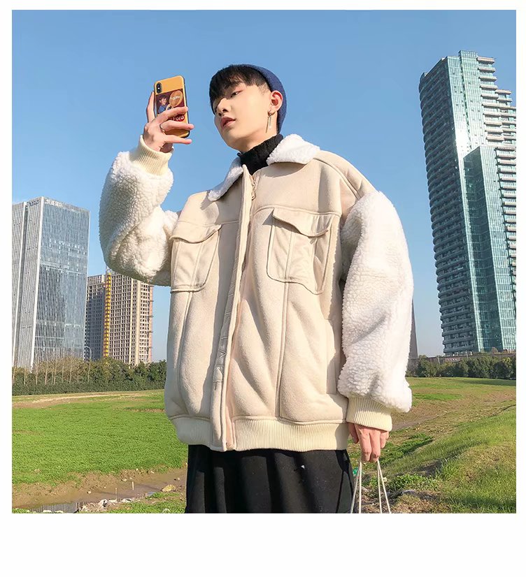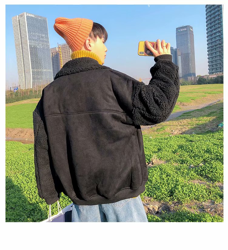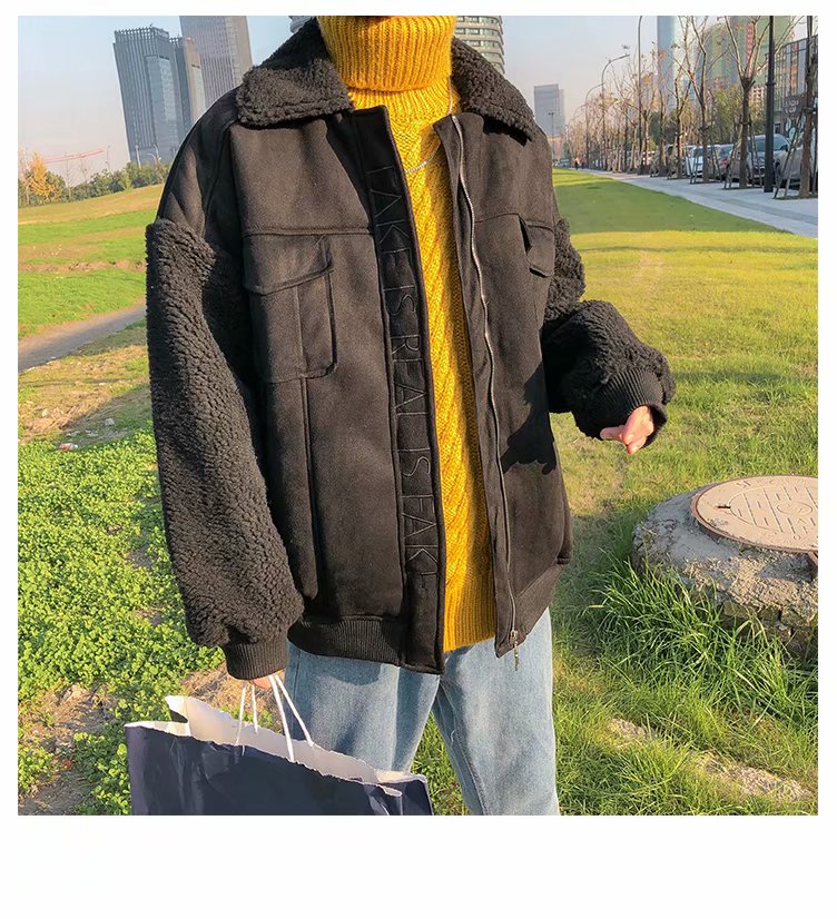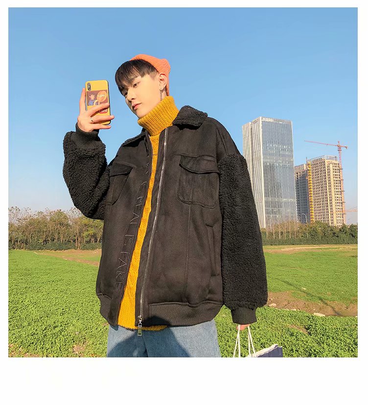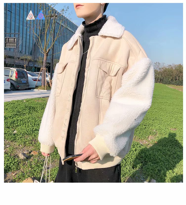 时尚棉衣男新款冬装棉服韩版潮流宽松青年加绒加厚羊羔毛棉袄外套