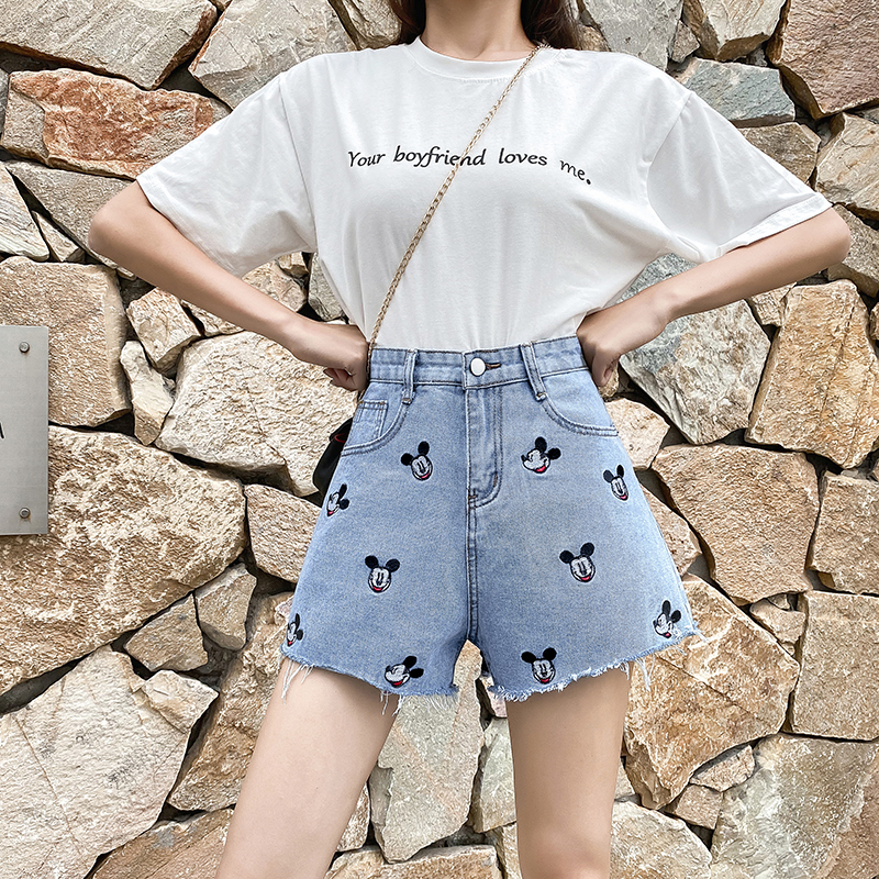 2020夏季新款米奇牛仔短裤女剪边A字薄款高腰显瘦外穿潮ins韩国潮