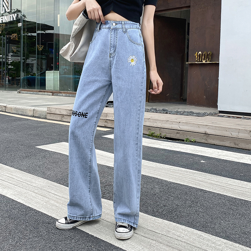 宽松直筒牛仔裤女网红小雏菊高腰阔腿裤2020夏季新款拖地裤潮