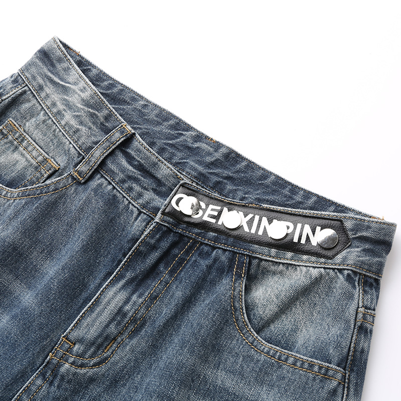 秋季高腰显瘦显高宽松毛边阔腿牛仔裤女学生浅蓝色破洞直筒裤子