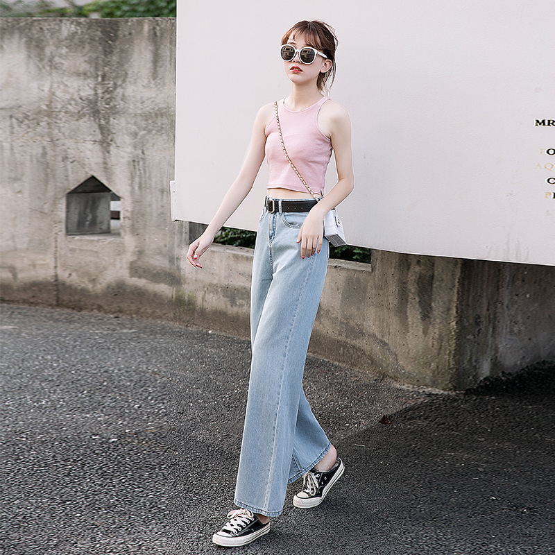 2020年新款阔脚拖地裤女高腰垂感小雏菊冰丝泫雅牛仔裤女直筒宽松