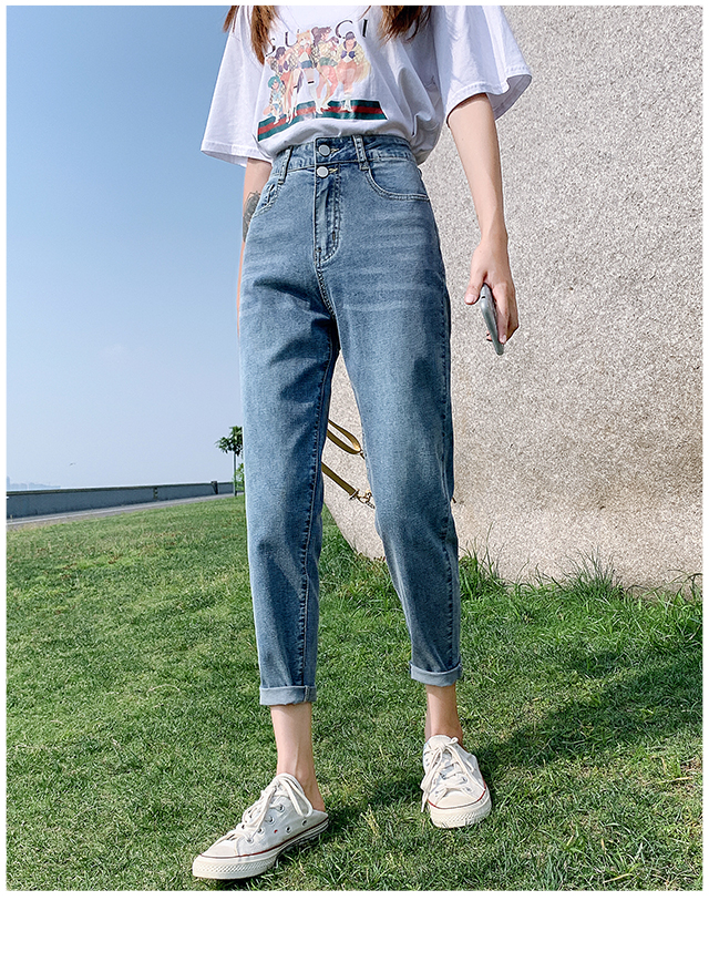 高腰哈伦老爹裤子2020秋季新款显瘦显高宽松直筒九分牛仔裤女百搭