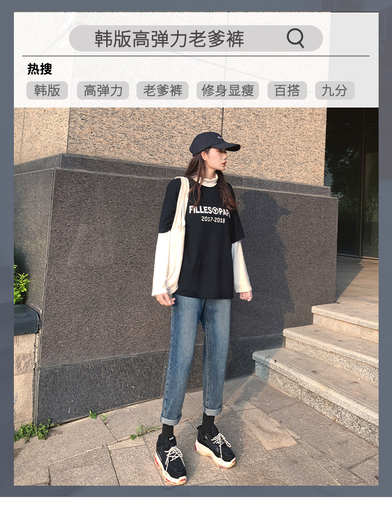 高腰哈伦老爹裤子2020秋季新款显瘦显高宽松直筒九分牛仔裤女百搭