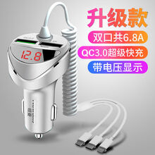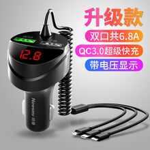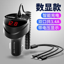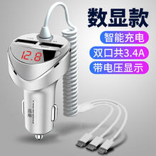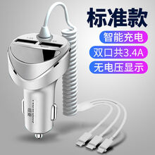 车载充电器自带线快充一拖三多功能多用点烟器转换插头大功率 黑色【普通款】双口共3.4A