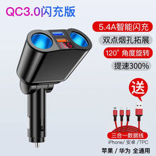 车载充电器一拖三一拖二点烟器转换插头usb手机多功能汽车冲车充 【标准版】充电提速99% 加【手机支架】