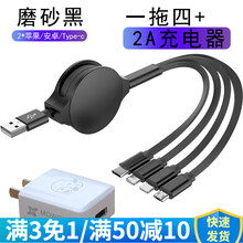 3A快充数据线苹果安卓华为type-c手机通用多功能伸缩三合一线头多 伸缩一拖四*2x苹果+安卓+typeC*磨砂黑【支