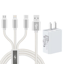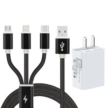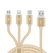 贝乐星辉适用于华为苹果安卓oppo小米vivo通用快充一拖三手机多功能充电器三线合一车载USB三 快充插头+[金色]三合一快充线