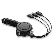ONEVAN 车载数据线一拖三车上手机充电器通用安卓多头功能三合一快充多用汽车点烟器usb转接头伸缩 【车充一拖三款】绅士黑创意伸缩一键收纳