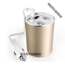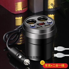 汽车载充电器点烟器一拖三带线USB接口转换插头货车24V12多孔快充汽车充电器转换头一拖三 带数显056