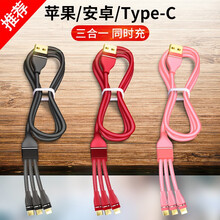 多功能手机充电线三头华为充电器线多头快充线二合一 【苹果/Type-c/安卓】幸运红1.2米快充版