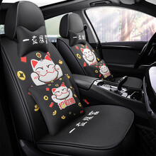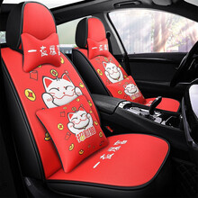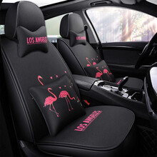 卡通汽车座套亚麻汽车坐垫全包围四季通用可爱个性女汽车