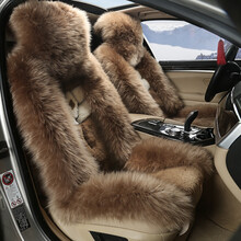 知宝正品纯羊毛绒汽车坐垫套保暖长羊毛绒车椅垫18秋冬季新款 年华似锦-驼色 大众迈腾/途锐 冬季羊毛