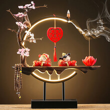 【高档礼盒装】【配送倒流香+线香】【陶瓷婚庆公仔,寓意百年好合】【LED台灯小夜灯】