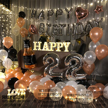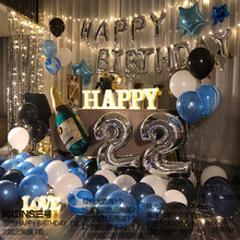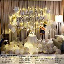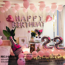 生日快乐女孩派对趴体装饰场景气球创意浪漫背景墙布置套餐 INS网红 一 号 +10米灯串+(2个数字)