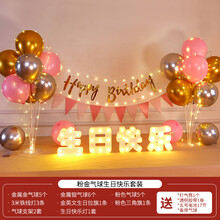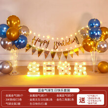 儿童6岁气球背景墙男童生日快乐装饰4周岁场景布置网红男孩女孩十 拉旗桌飘气球A+灯