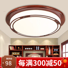 木头记 中式吸顶灯实木走廊阳台灯玄关入户花园过道灯复古仿古LED灯饰 5233圆直径23cm三色变光