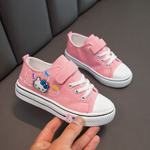 女童帆布鞋软底儿童运动鞋春季透气女孩板鞋卡通可爱女宝宝休闲鞋 卡通帆布鞋-黑色 偏小一码 26码/鞋内长约16.5cm图1