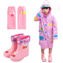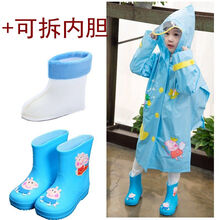 ℑ℘品牌特价童装迪尼洋气的小猪佩奇雨衣雨鞋二件套装儿童雨鞋男雨靴加绒女童保暖水鞋幼儿园 蓝猪雨鞋+蓝猪雨衣 雨鞋内长15CM/25码+雨衣S码图1