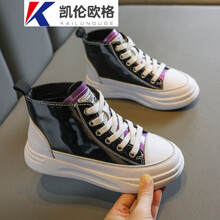 凯伦欧格童鞋女运动鞋2020新款百搭高帮儿童鞋子二棉大童老爹鞋冬aj板鞋 银色单鞋 27码/鞋内长17CM图1