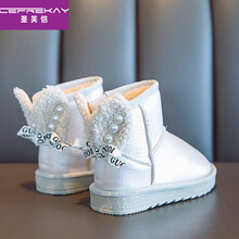 圣芙恺 女童雪地靴公主棉鞋2020冬季韩版新款宝宝加厚加绒中大童冬季儿童保暖鞋可爱卡通兔耳朵童鞋 粉红色  27码内长16.3cm图1