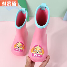 时慕语儿童靴子玩水男孩女孩汪汪队宝宝幼儿雨靴水鞋子男小孩雨鞋幼儿园防滑男童女童水鞋 2016汪汪队雨鞋红色毛毛 内长14厘米