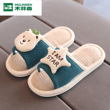 木林森日式拖鞋亲子亚麻拖鞋春秋季居家用情侣室内地板棉麻小孩男童女童儿童拖鞋 深灰色(星星熊) 35-36码(适合35-36脚穿)