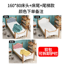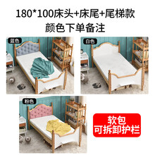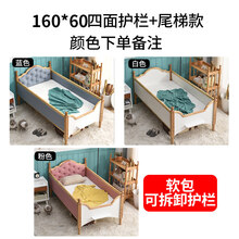 迪士尼实木婴儿床儿童床带护栏小床拼接大床男孩女孩公主床加宽延边神器 160*60软包款+两面护栏+尾梯 其他 不带