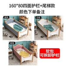迪士尼实木婴儿床儿童床带护栏小床拼接大床男孩女孩公主床加宽延边神器 160*60软包款+两面护栏+尾梯 其他  不带图1