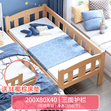 迪士尼实木婴儿童床男孩加宽床带护栏单人床女孩公主床宝宝小床拼接大床 128*60*40四面护栏+尾梯+3E棕垫 其他 不带