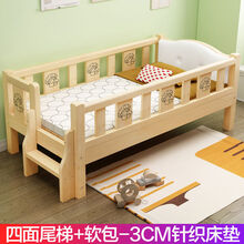 迪士尼儿童床男孩单人床女孩公主婴儿床拼接大床加宽床边小床带护栏实木儿童拼接床 三面护栏+(裸床无床垫) 150长*60宽*40高