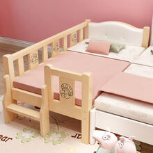 迪士尼儿童床男孩单人床女孩公主婴儿床拼接大床加宽床边小床带护栏实木儿童拼接床 三面护栏+(裸床无床垫) 150长*60宽*40高图1