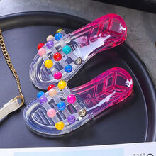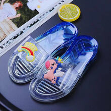 飞之健起新款亲子儿童拖鞋一字拖女神时尚外穿沙滩凉拖鞋女童室内鞋可爱水晶鞋 水晶彩虹马红色 童鞋30码内长17.5cm图1